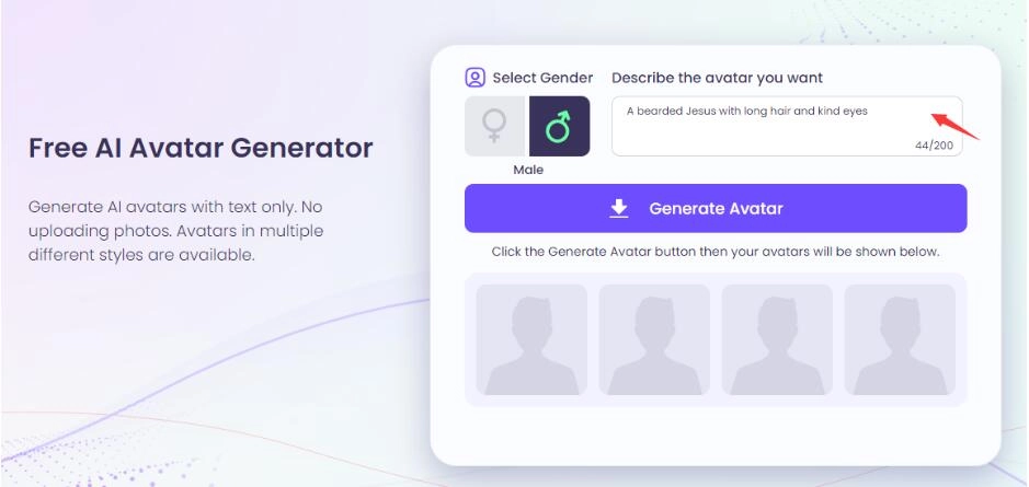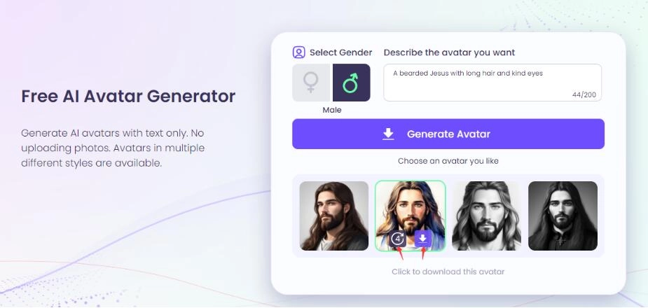 One of the most fascinating developments in AI-generated Jesus portraits is the ability to transform textual descriptions into visual representations. Through the use of AI algorithms, free avatar generators like Vidnoz AI have released an AI Jesus generate tool that is capable of producing lifelike images based solely on textual inputs.