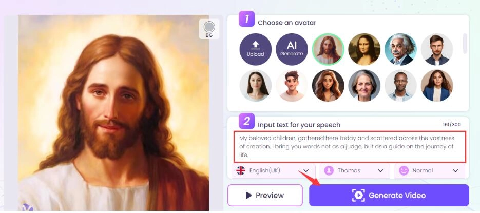 Step 3. Input the text you want your AI Jesus to talk to, and then click the Generate Video button.