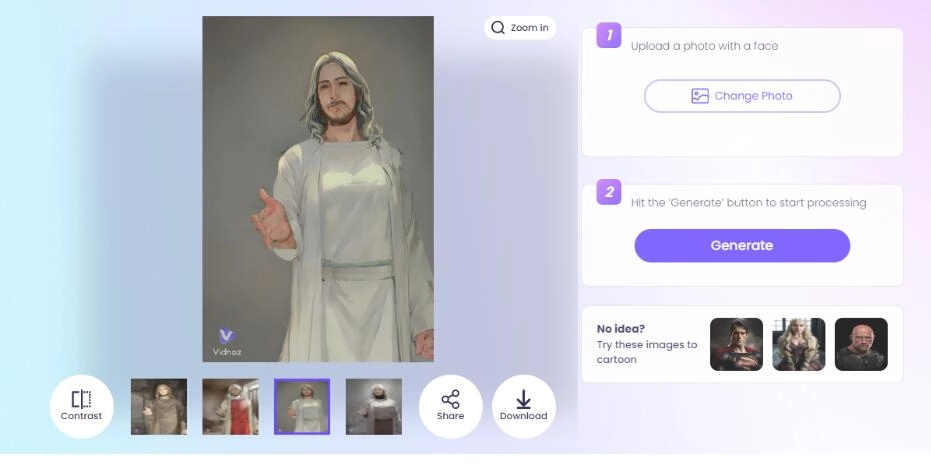 Now, let's see how to make a Jesus image into a cartoon with Vidnoz Free AI Cartoon Generator: