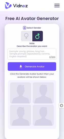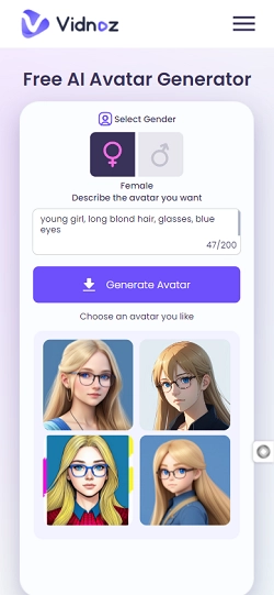 If you do not want to download any app like Lensa AI, try Vidnoz AI Avatar Generator, which is free to use, and there is no worry about installing it.