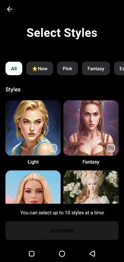 - With a simple click, you can choose the style of your choice on Lensa to make cool and unique avatars and selfies. You can select upto ten styles by clicking on the thumbnail for each style.