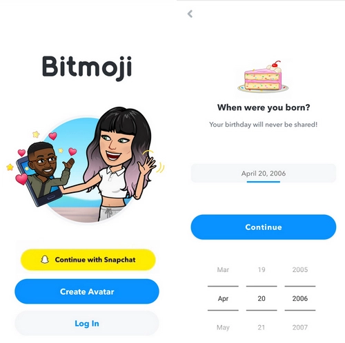 Step 1. Open Bitmoji on your mobile phone and create an account on this app. If you’re signing in with Snapchat, you can also continue with your Snapchat account.