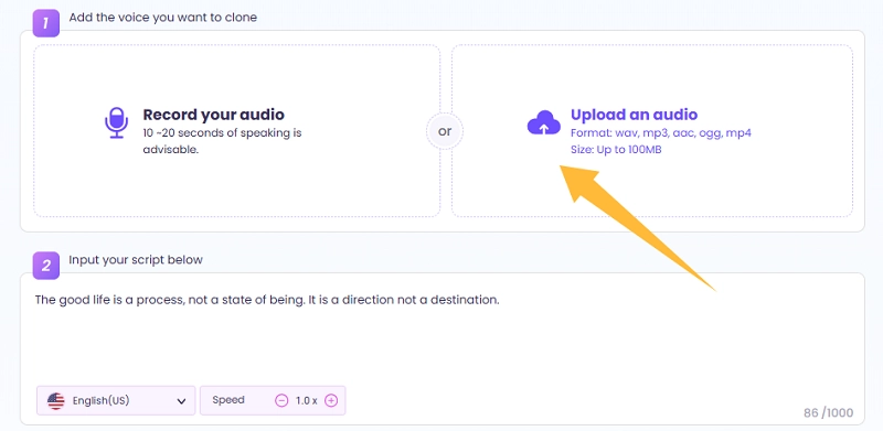 Step 3. Input the script you want the voice to say. And select the language you wish to convert to. Also, configure the speaking speed.