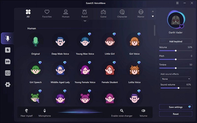 - Open the application and choose a deep voice filter which may be labeled as “deep voice,” “bass,” or “male voice.” You can also try a discord voice filter if you are a gamer.