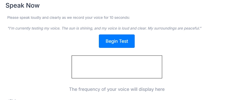 - Then, you have to read a provided text aloud naturally and clearly for at least 10 seconds.