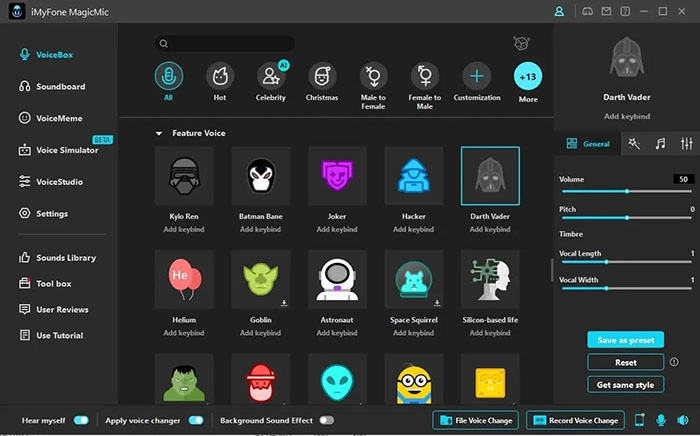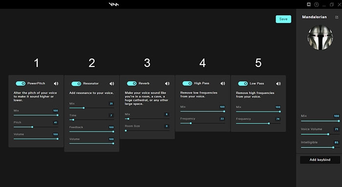 Compatible with Windows and macOS, Voicemod is a real-time voice changer that lets you be who you want in the metaverse. You can change your voice to Mandalorian and add sound effects to your game with the Soundboard. With great compatibility, Voicemod is a useful Mandalorian voice changer for Discord, Roblox, Zoom, and more.