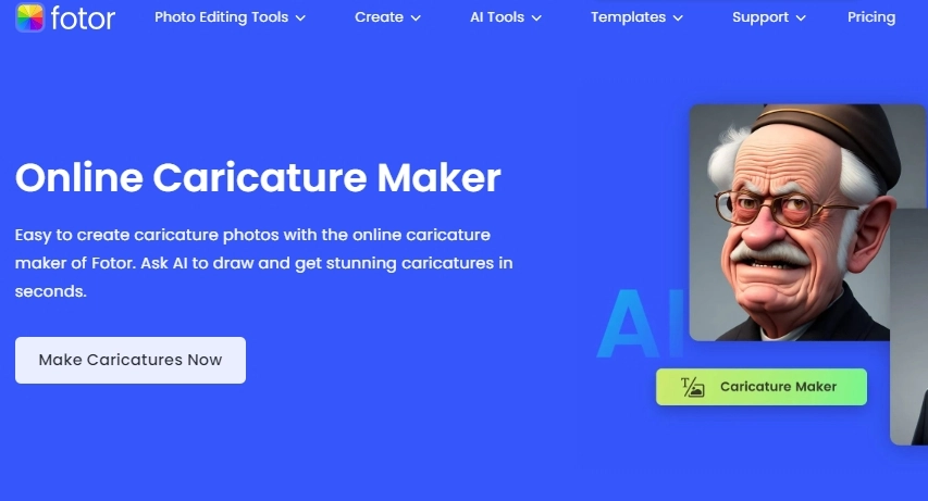 The following example will demonstrate the use of Fotor to convert photo to caricature online.