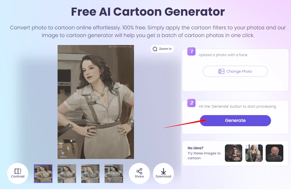 Step 2. Click “Generate” to get your AI caricature photo in seconds.