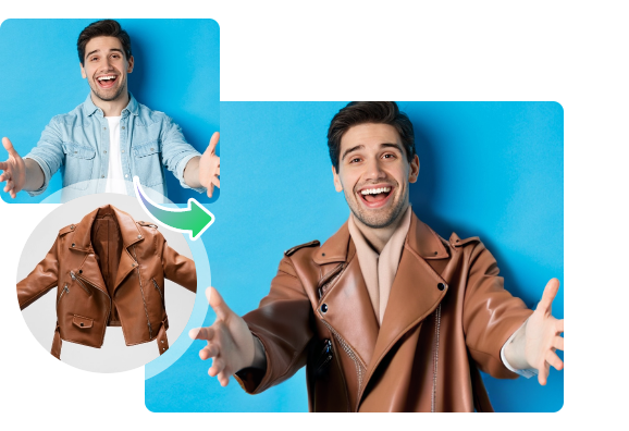Change your clothes in photos and tailor the virtual outfits to any desired style. Do it in seconds with the free online AI clothes changer & editor!