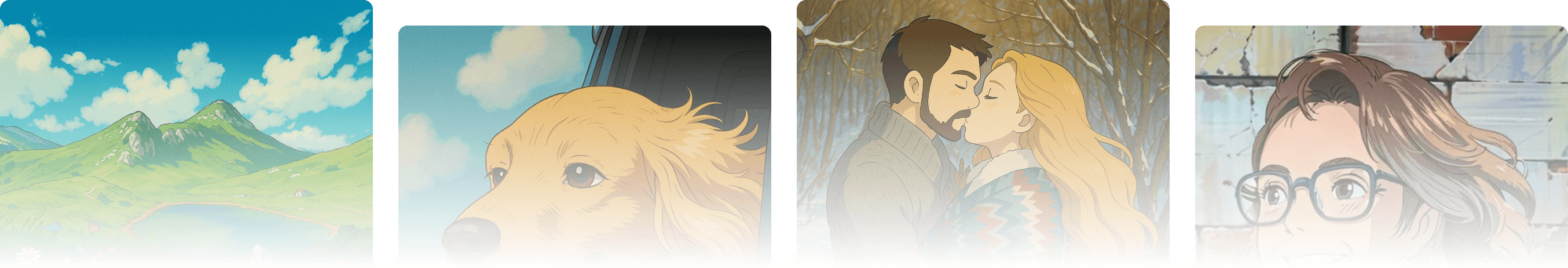 Create your one-of-a-kind AI Ghibli version image and video from any photo. Enjoy free, instant, and high-quality style transformation.