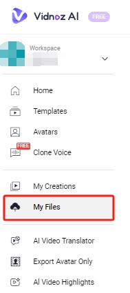 Log in to your Vidnoz AI account and upload the video. Then go to "My File" and upload your video.