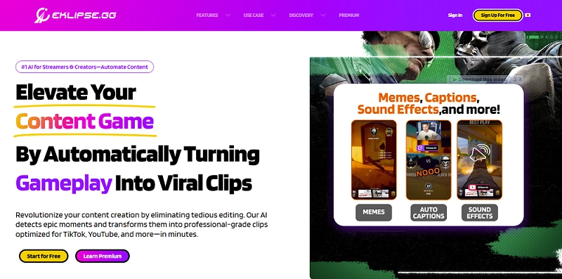 Eklipse.gg is a powerhouse when it comes to automatic clip maker Twitch tools. It supports over 300 games, including popular titles like Valorant, Fortnite, and League of Legends. Whether you're streaming live or uploading local recordings, Eklipse AI clip maker identifies and extracts hype-worthy moments. A standout feature is its ability to convert horizontal gameplay into vertical formats suitable for platforms like TikTok and Instagram Reels.
