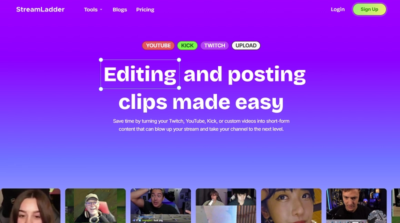 StreamLadder is a web-based tool that brings high-quality, AI-powered editing to Twitch creators. Features include auto-captioning, adding stickers and text, and scheduling social media posts. Simply paste your Twitch or YouTube clip URL or upload a video from your computer, the built-in editor can help customize your clip, insert captions, stickers, and tweak layouts. Finally you can export the video in your desired format or schedule it for posting on social media platforms.