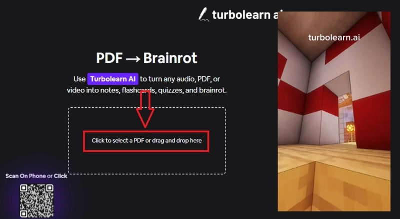 Step 1: Open the TurboLearn AI brainrot generator in your browser and upload the desired PDF file.