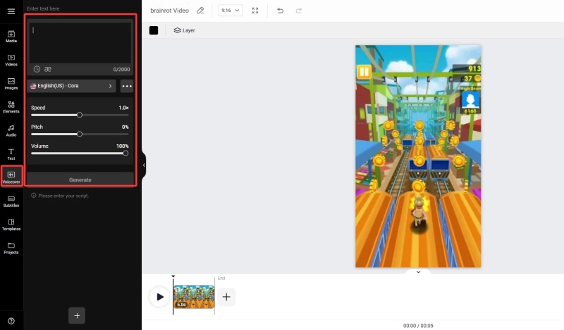 AI Brainrot Video Generator - Online Voiceover Video Editor