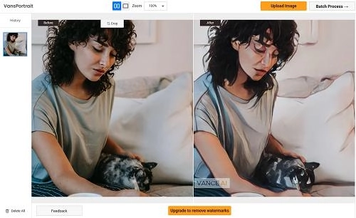 VanceAI는 매우 기능적인 사진 강화 도구를 제공합니다. 이 카툰 AI 생성기는 또한 증가하는 사진 해상도, 소음 최소화, 색상 수정 및 세부 사항 수정을 제공합니다. 또한 자동 사진 편집기를 사용하여 한 번의 클릭으로 여러 번의 편집을 수행할 수 있습니다. 또한 다양한 AI 카툰 트렌드를 만드는 데 도움을 줄 수 있는 최고의 AI 애니메이션 소프트웨어 도구입니다. 개인 정보가 안전한지 아닌지 걱정된다면 공식적으로 처리되면 24시간 내에 업로드된 모든 이미지가 삭제된다고 하므로 VanceAI에 의지할 수 있습니다.