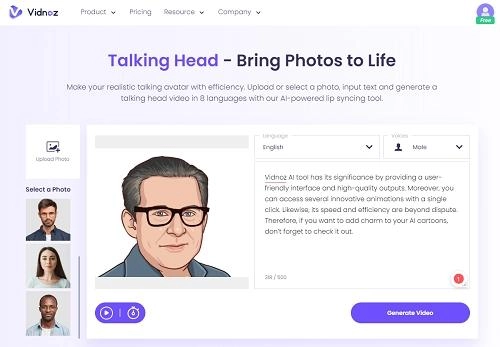 여러분은 여러분의 AI 카툰 캐릭터를 살아 있게 만들거나 심지어 그들이 말하게 만드는 것에 대해 생각해 본 적이 있나요? 만약 여러분의 대답이 그렇다라면, 여기 이 아이디어에 대한 가장 좋은 방법이 있습니다. Vidnoz Talking Head는 그것의 고급 표제 특징들을 사용하여 여러분의 AI 카툰 캐릭터를 살아 있게 만드는 놀라운 무료 AI 카툰 생성기입니다.