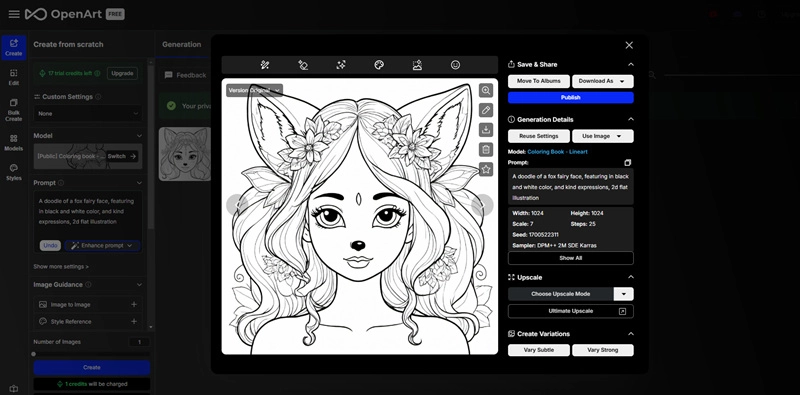 Draw excellent doodles without expert skills - with AI, anyone can be an expert in drawing doodles. You can use prompts to generate ideal Doodle AI drawings. You don’t need to draw a line, or a circle to turn images into coloring pages. The results are of high quality, stylish and exquisite. But the only difficulty is that you need to be a good prompts provider or you cannot use Openart.ai’s text to doodle AI tools like a wizard.