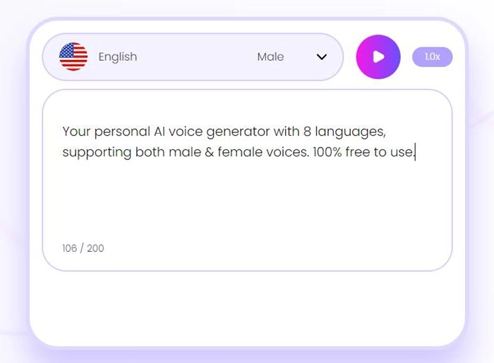 Multilingual Support: Select from a large variety of eight languages such as male and female voices. This gives you the luxury to effectively communicate across diverse audience groups.
