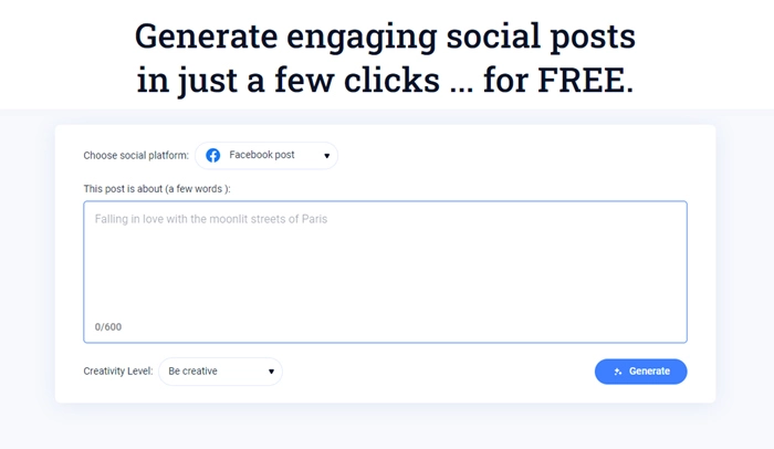 Just need a few words as excerpts, input these words into the blank and a qualified post will be produced in seconds. This is the magic of AI. This type of AI for social media is ultra-effective especially when you need to do a massive post in a short time.
