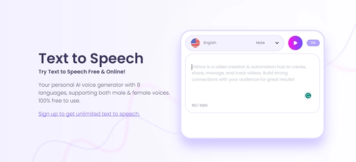 Step 1. Navigate to https://www.vidnoz.com/text-to-speech.html.