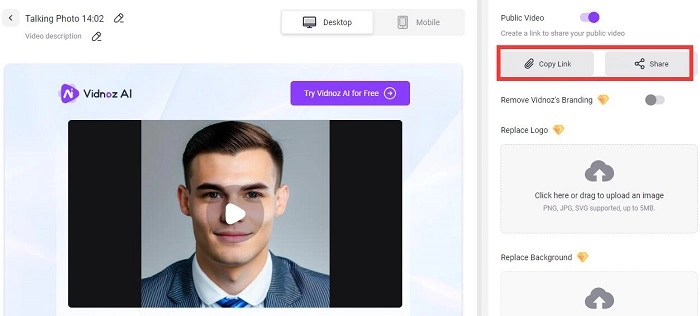 Step 3. After the video is generated, click the Copy Link or Share button to share videos on Facebook, Twitter and other platforms directly.