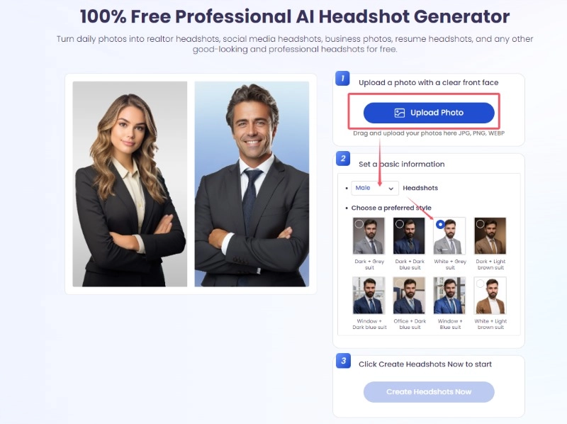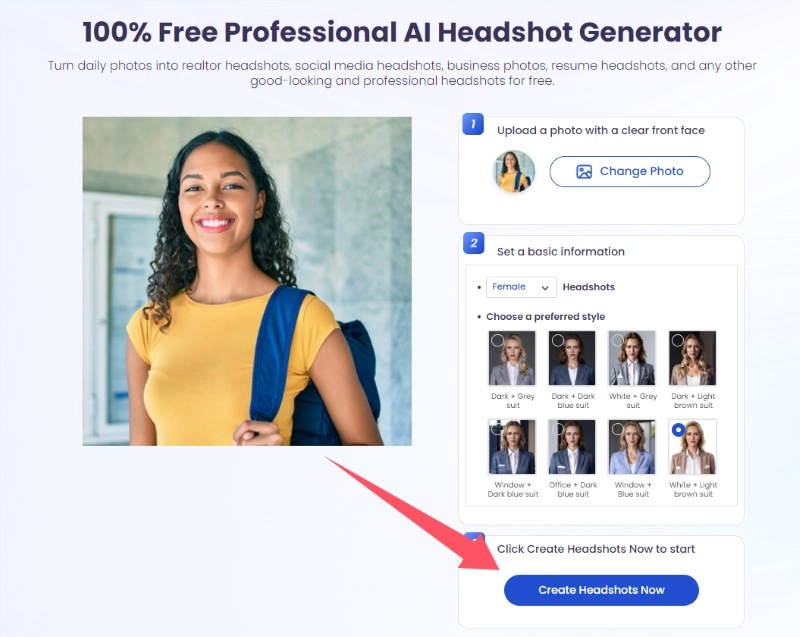 Step 3. Click on the “Create Headshot Now” button to generate a professional headshot online free.