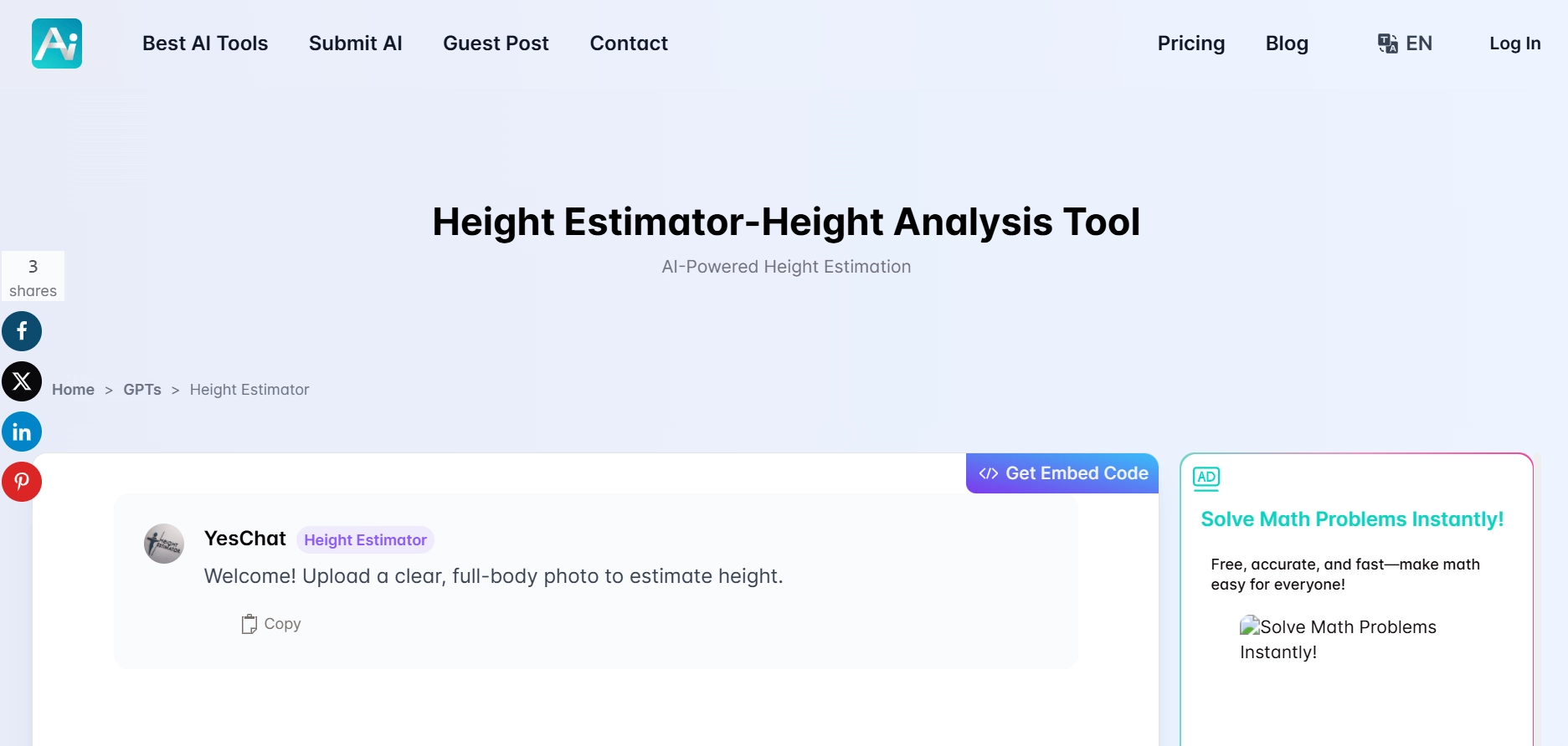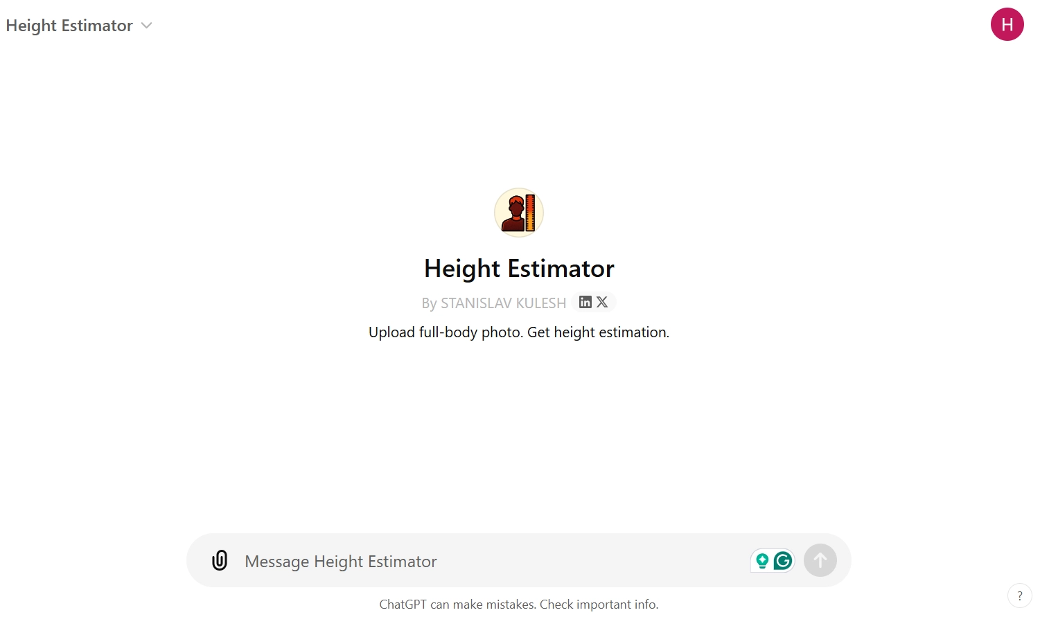 ChatGPT Height Estimator, an AI chatbot for getting accurate height estimations based on diverse body posture and proportions from uploaded photos. This AI height estimator from photo provides height calculations that are often accurate to within 1 inch, making it a popular choice for people who value precision and convenience.