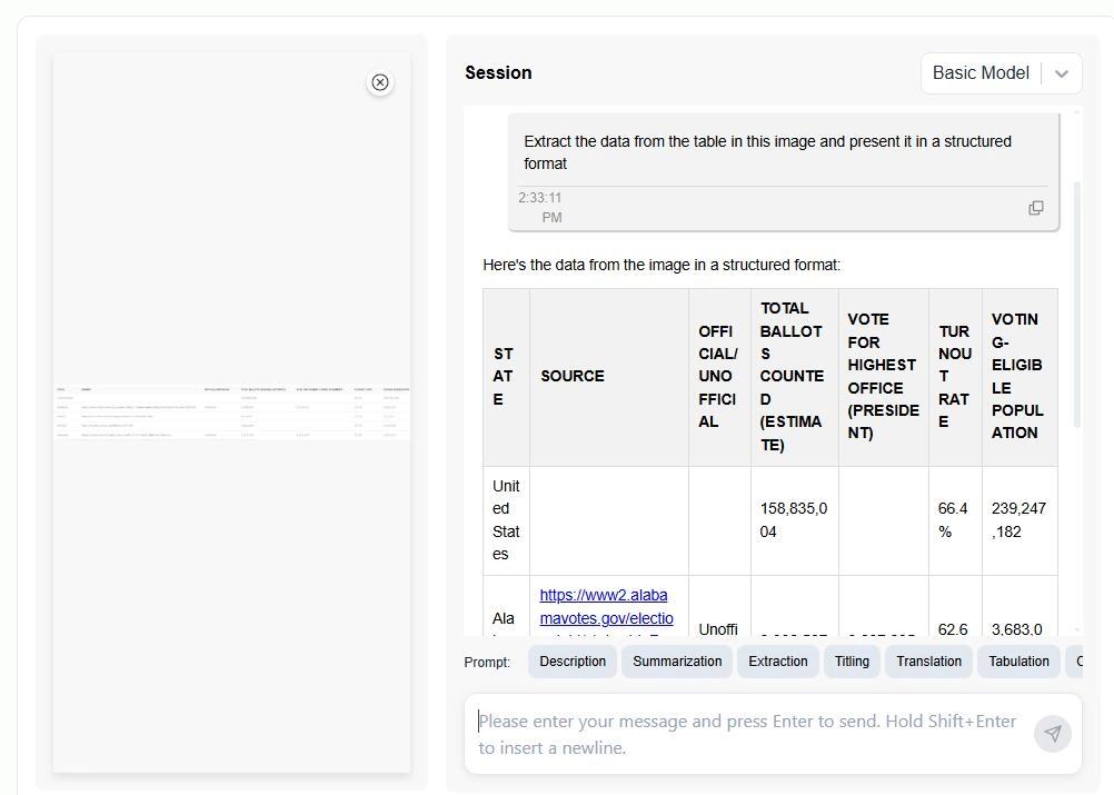 If you are looking for an image describing AI to help your study and research, this tool will be an ideal choice. It comes with a series of text and data analysis prompt templates. With the aid of this tool, you can let it describe the objects and scenarios in your images, summarize, translate, and also analyze and create tables.