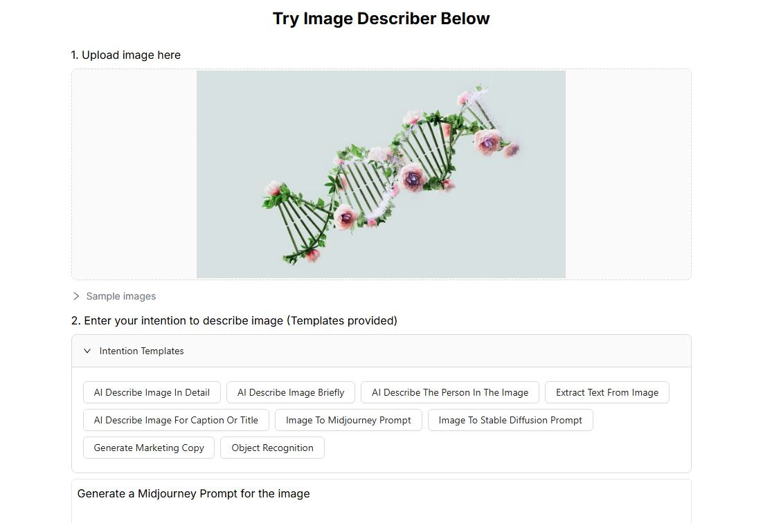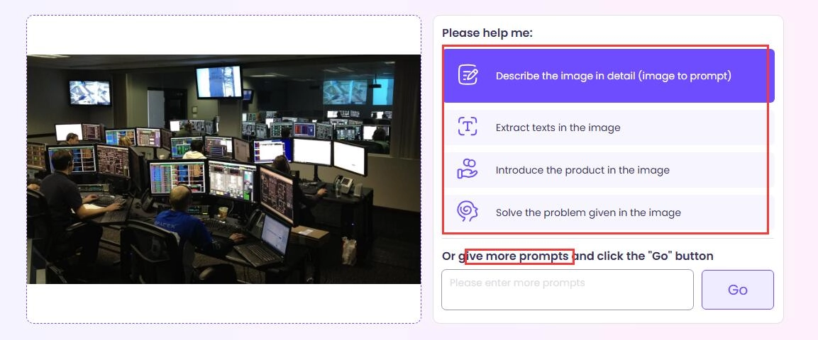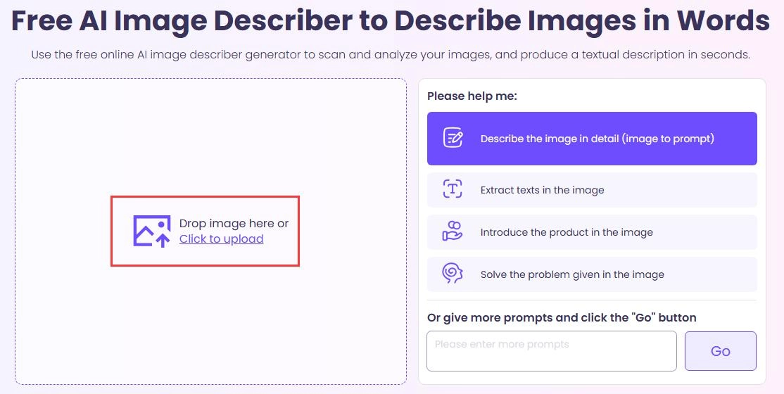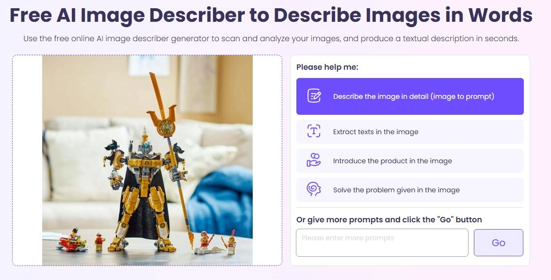 Step 2. Choose how to describe the image from the 4 options, or input prompts as you like. For example, describe the image in detail.