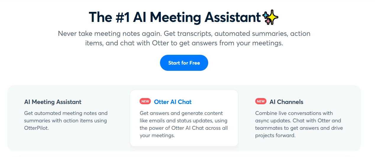 Otter AI is the pioneer in real-time meeting transcriptions. It works by instantly converting conversations into text during meetings. The exceptional language identification accuracy, like languages and diverse accents, makes it stand out. Besides, its real-time transcription ensures every user can follow along with. Lastly, you can review the AI meeting notes with a breeze with its clear speaker labelling feature.