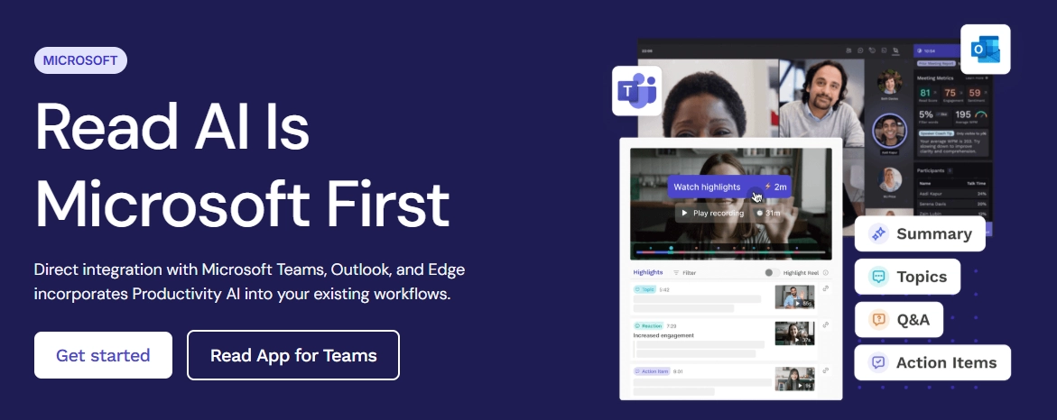 Unlike other AIs for meeting note, Read AI is the meeting master in Microsoft Teams. Real time audio-to-text transcription, important information highlighting and meeting summary…Apart from those regular features, this AI meeting note taker helps improve the meeting engagements from preparations to ends with advanced features, such as recommending proper engagers, guiding meetings dynamically, and analyzing engagers’ performances.
