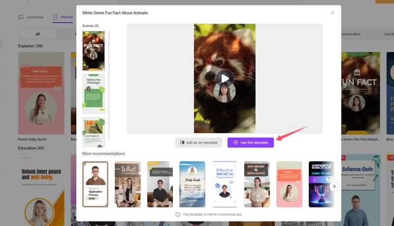 Step 3: Start with your desired template by clicking “Use This Template” button.