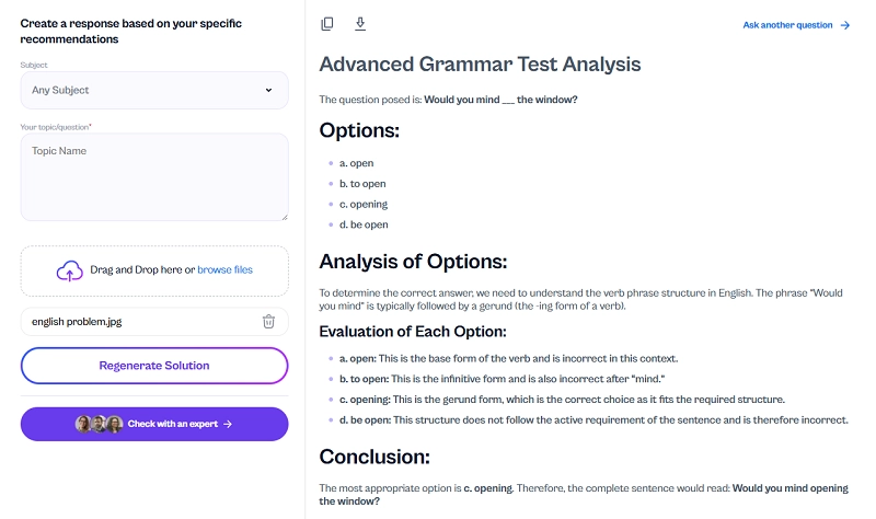 >> Receive your response: Within seconds, the AI-powered tool will give you a picture answer to your problem based on the analysis.