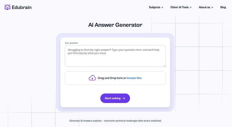 EduBrain AI Answer Generator is one of the most powerful photo AI answer generator tools that uses the latest technology to answer a wide range of academic problems. You can use this tool to solve a math equation, a science diagram, or analyze a historical document within moments. Simply paste your text or upload your picture to the tool and get custom-built answers for better understanding.