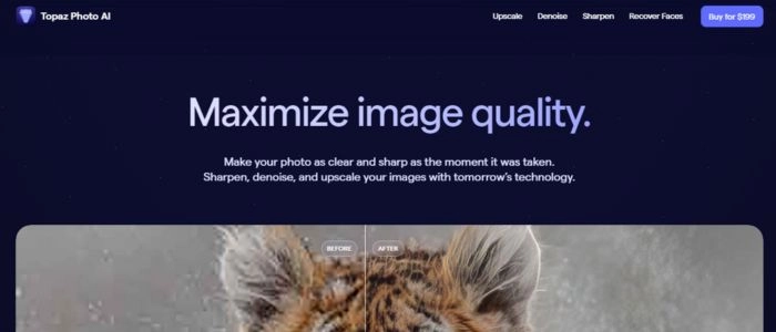 Topaz Photo AI is one of the best AI photo enhancers. It can sharpen and improve the resolution of images with marvelous precision. For creative minds, this tool is great for honing their talent and skill. You can use it as a standalone program or as a plug-in for your existing image editor. Since the software is based on deep-learning, it can easily distinguish between a real image detail and noise or blue, and then generate natural results.