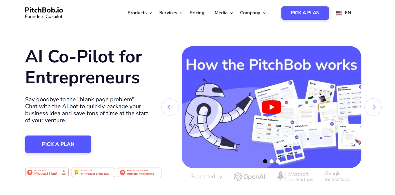 Designed for aspiring startups, PitchBob provides an artificially intelligent Q&A-assisted co-pilot that guides you through the pitch deck creation and better refines your message in business idea development. Plus with various themed templates available, you can easily jumpstart and produce engaging outputs that perfectly match your vision.