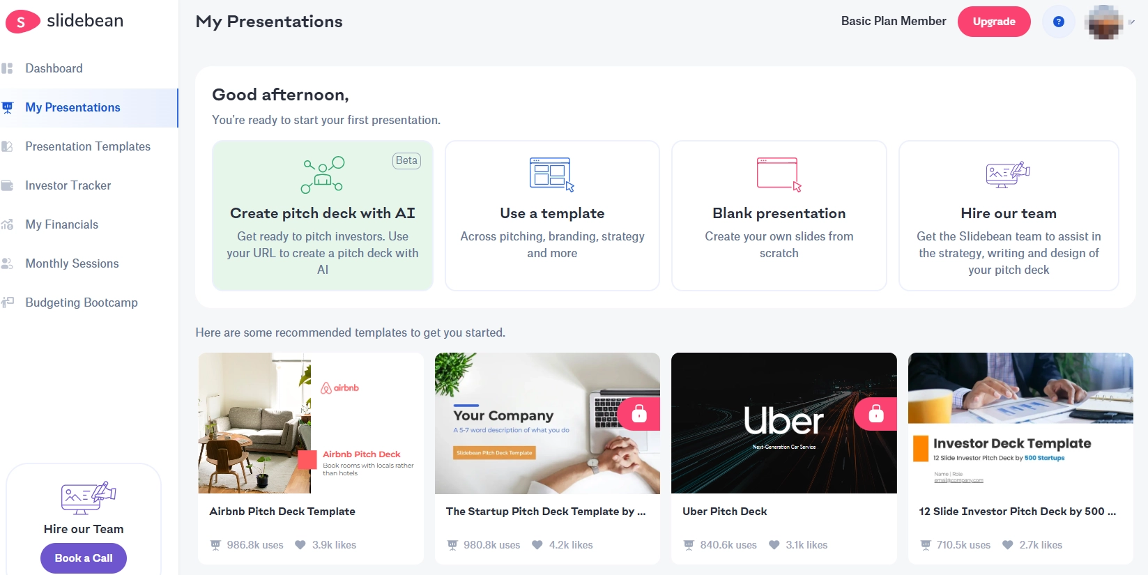 Best For: Entrepreneurs that need AI-powered assistance for new project ideas and want to craft standout pitch decks in a short period of time.
