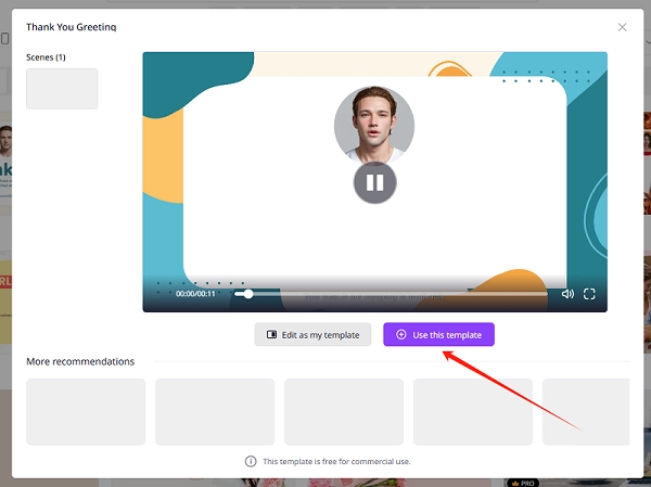 Search and find the thank you video template you like. There are hundreds of templates to choose from.