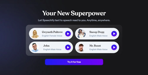 Speechify is well noted for its strong capability of converting long-form text to speech and reading it loudly. It has helped millions of people read with pleasure more efficiently. Its product line also covers other popular AI audio tools like AI Voice-overs, Voice Cloning, AI Dubbing, and Transcription. On Speechify, you can even find high-quality audiobooks.