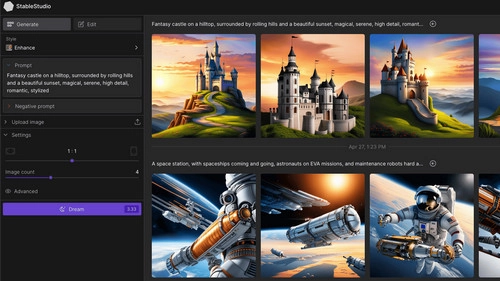Stable Diffusion is an open-source machine learning model focusing on text-to-image content creation. It’s hard to ignore this diffusion model when we recommend the best AI tools for art in the roll. This option is perfectly suitable for designers and artists to get inspired and step into awesome digital images efficiently. Stable Diffusion works on DreamStudio, the cloud service developed by Stability AI, the company behind Stable Diffusion. You can also run it locally via Python and Github.