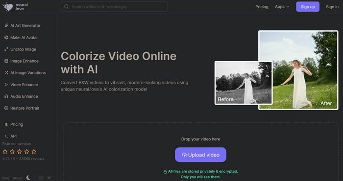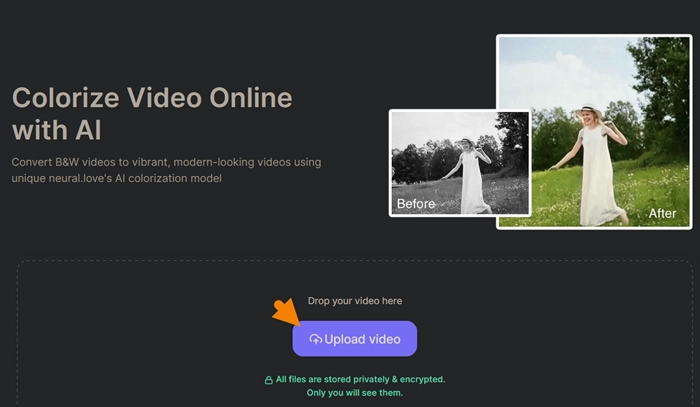 How to colorize videos online free with AI? As a matter of fact, most online AI video colorizers share the similar tutorial. So, let’s take Neural Love as an example. Follow the steps to convert black and white video to color online free now.