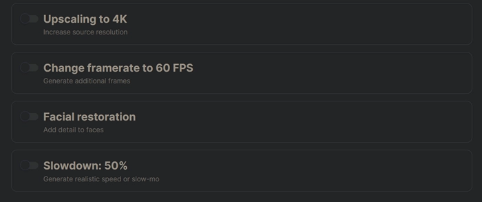 After the AI video colorize complete analyzing the video, you can make customizations. For example, upscale video to 4K, change the frame rate to 60fps, enhance facial details and make slow-mo.