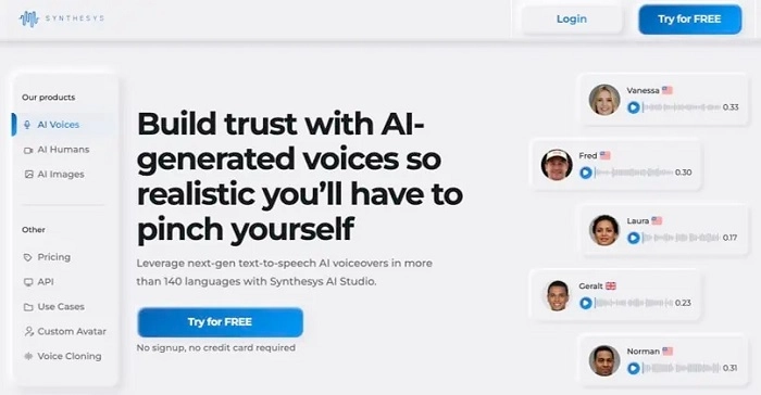 5. Synthesys AI Voiceover - Best AI Voice Generator for English Voices