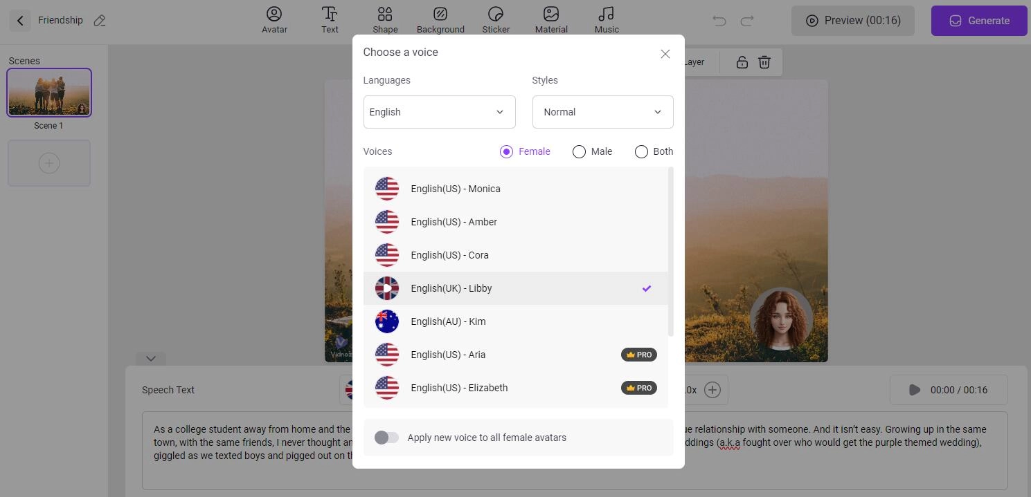 Step 5. Click Generate to create your video with synthetic AI voices.