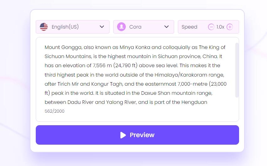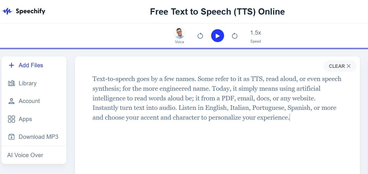 Speechify has 50+ voices in 30+ languages. Some celebrity voices like Snoop Dogg and Gwyneth Paltrow are supported. The text to speech engine also turns it to be an AI reader to read PDF, docs, email, online books etc., out. It also enables you to upload a document and convert it to synthetic speech in minutes.