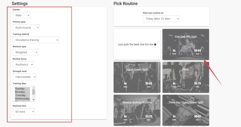 Strongr Fastr is a comprehensive free AI workout generator that offers both workout plan and diet plan generation. Users indicate their goals, schedule, and other important information by selecting a series of choices that it sets up in advance. It then creates a workout plan that is tailored to suit your needs, whether you are a beginner or a workout novice.
