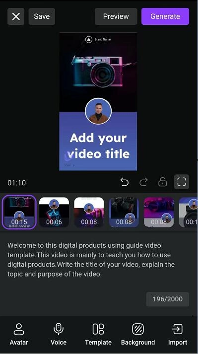 Step 4. Modify all the details for text, images, and background music. Then preview and generate your faceless YouTue channel video.