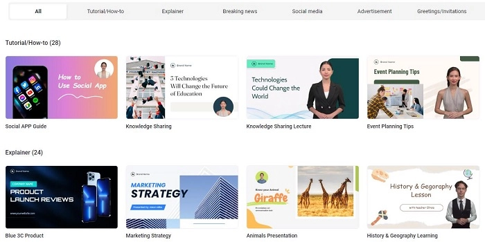 - 800+ choosable templates. This faceless AI video generator offers 800+ templates covering tens of fields including social media, education, health, medical, marketing, etc. You can create videos with well-designed templates quickly only by modifying the text and images.