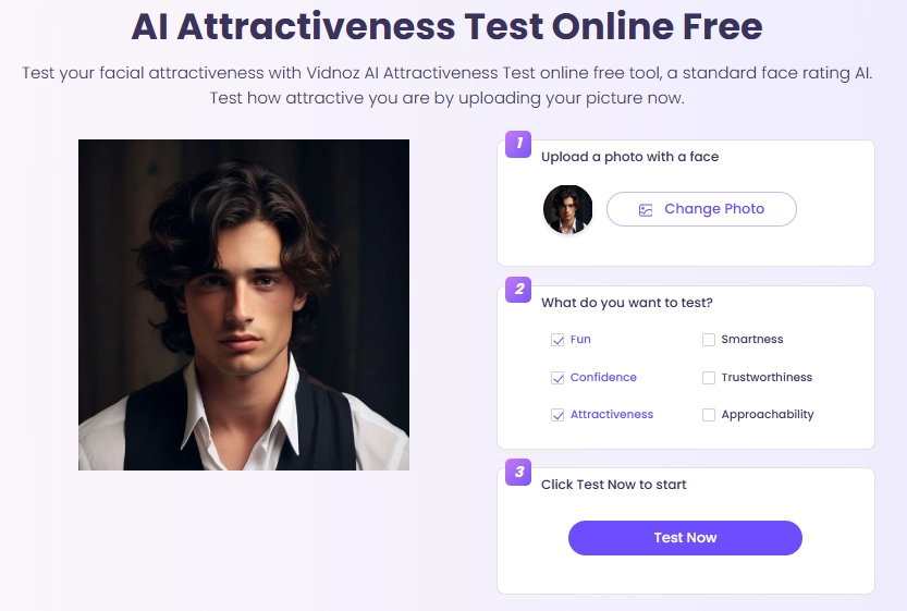 1. Vidnoz AI Attractiveness Test: Rate Your Attractiveness Comprehensively